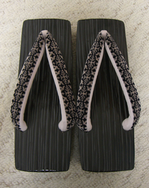 その草履は、かれこれ早や1年ほど前に『着物バザールへ行く』の回で購入したスクエアの下駄。