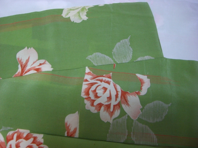 でもでも、布団皮で長さが確か20m以上あったので、一尺八寸の無双袖の長襦袢作りに計画変更し、長襦袢の他に名古屋帯と半幅帯の合計3つも作れたので、私としては結果オーライとなりました