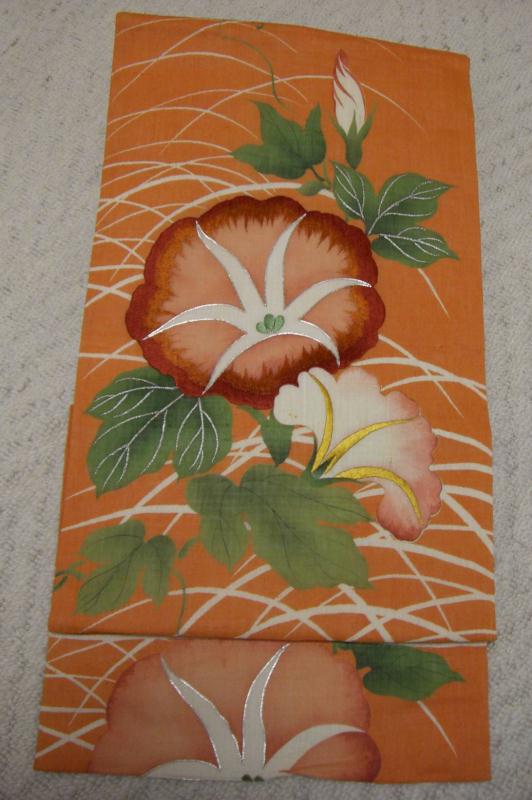 右は麻で朝顔の刺繍帯。