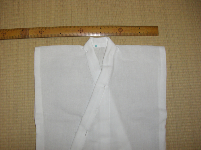 背縫いが無いだけで、袵も付いているし、袖も丸みが入っているし、衿も付いている。
