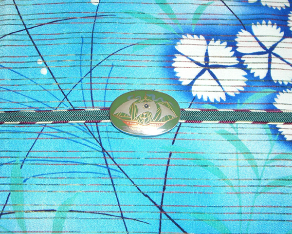 帆船の帯留は、七宝だったかな。裏は純銀と彫ってあったけど。