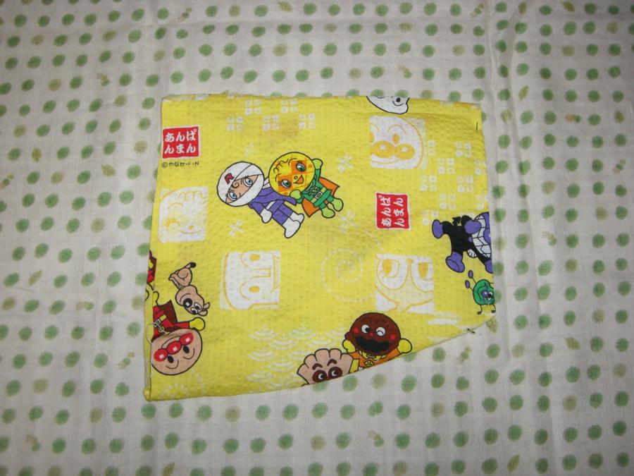 先日ぴー太郎王子に縫った産着の、アンパンマンの残り生地で何か作れないかと、先生に相談してみたところ、前回よりは小さくなるけれども、もう一枚産着を作る事になりました。