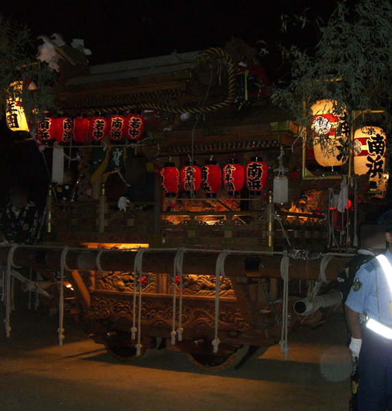 山合わせ待ちのだんじり、横からと前から。