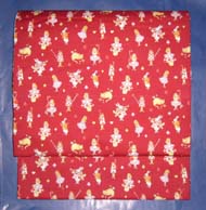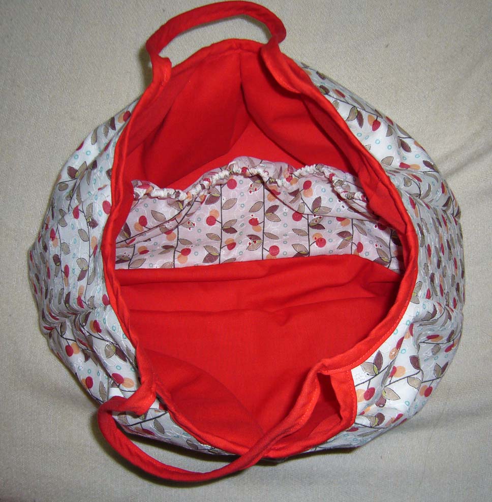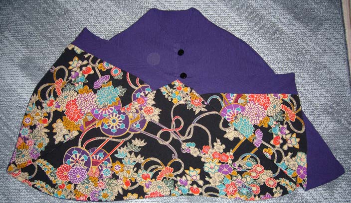 ちりめんの生地で作ったので、ミシンを使えなくて手縫いでチクチクと作りました。裏の生地が派手かしらと思っていたけれど、出来上がってみたらなかなかよいではないですか(*^∀^*)