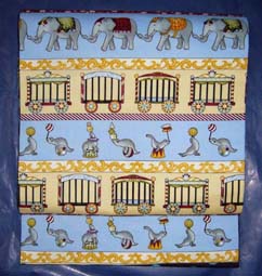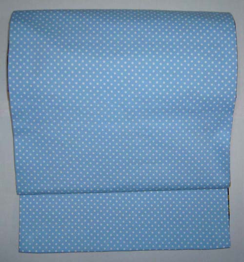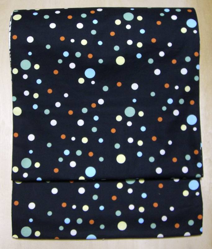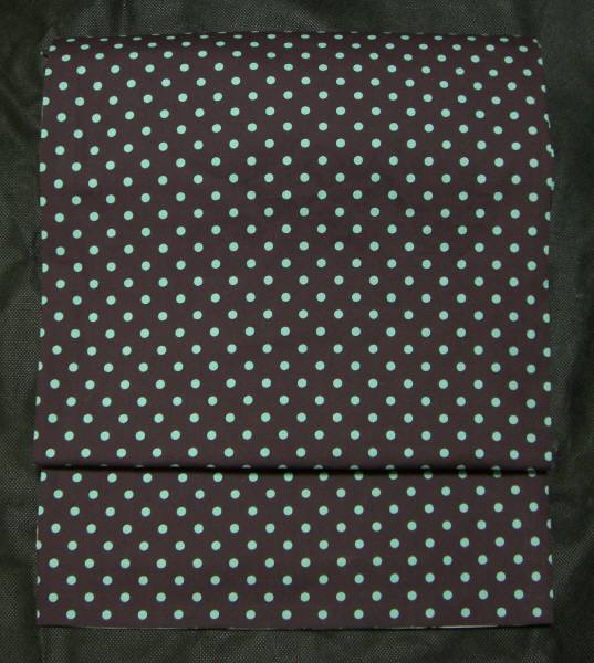 片方はサーカスの動物(といっても象とオットセイ?だけですが^^;)と檻のようなものでボーダーになっている楽しい柄です。もう片方は紫(茶色なのかもしれません)に綺麗な水色の水玉がちらほらしている帯です。