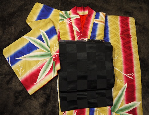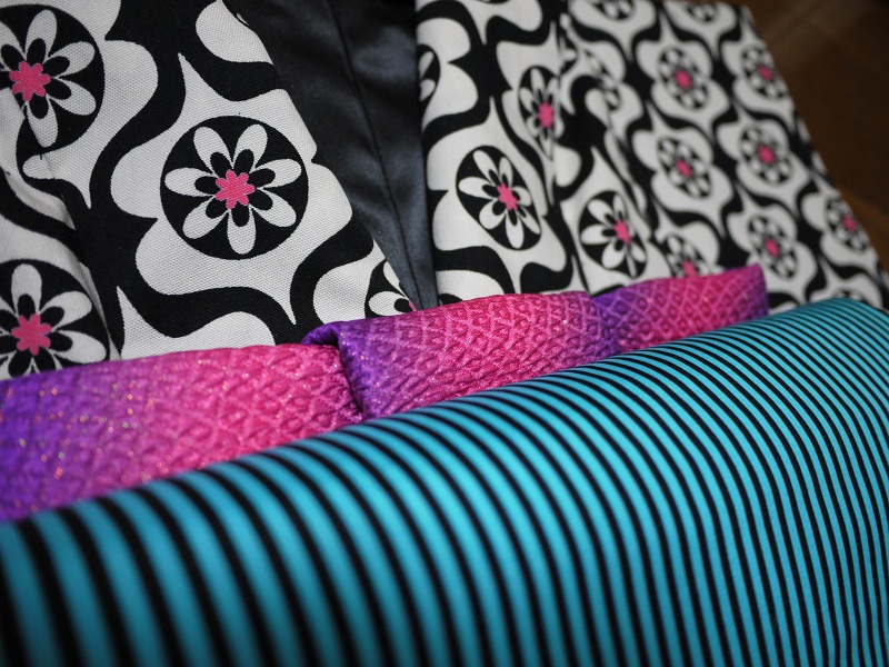 綿なので脇線などの直線はミシンで縫いましたが他の部分は手縫いで頑張りました。team☆tiaraの帯と合わせるとこんな感じ。