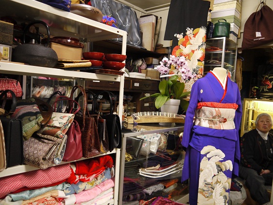 三河屋さんの店内は所狭しと着物やかんざしやバック等が置いてあります。