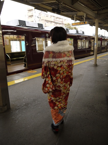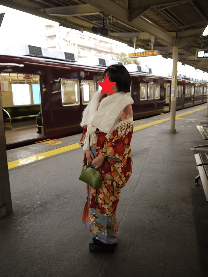 帰りの電車に乗る直前に自分の姿を撮るのも忘れていたことを思い出し、なんとかあきこちゃんに撮ってもらいました。