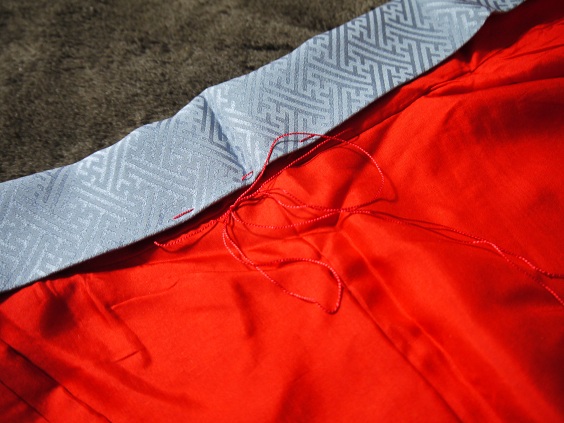 普段はついてなければ糸でその都度、荒く縫っちゃったりしてるんですが、先日和裁の本で引き糸の付け方を発見したのでそれにしちゃおうかなぁ~と。アンティーク着物でたまに引き糸が付いてるのがあるんですが、どうなってんのかなぁ~と思ってたので発見した時はうれしかったです。