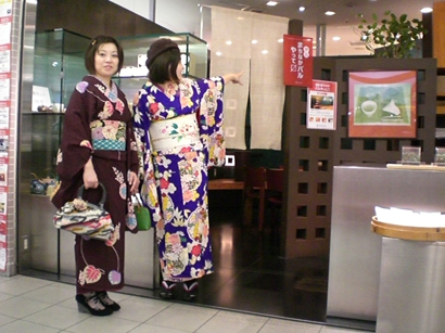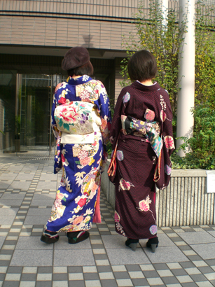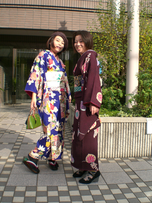 今日は二人ともアンティークテイストで、私は刺繍の帯で、美紗さんは半幅帯をかわいく結んでいます。