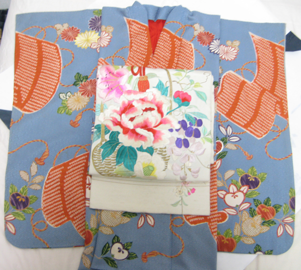 素敵な水色の訪問着とこの間の「伊丹まちなかバル」で締めていた帯を締めようと思っておりました。